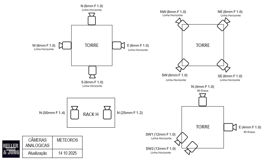 As câmeras destinadas ao registro de meteoros possuem uma cobertura de 100% dos Estados do Rio Grande do Sul, Santa Catarina e Paraná. Também cobrem o sul de São Paulo e Mato Grosso do Sul. A abrangência incluí 100% do Uruguai e parte da Argentina e Paraguai.